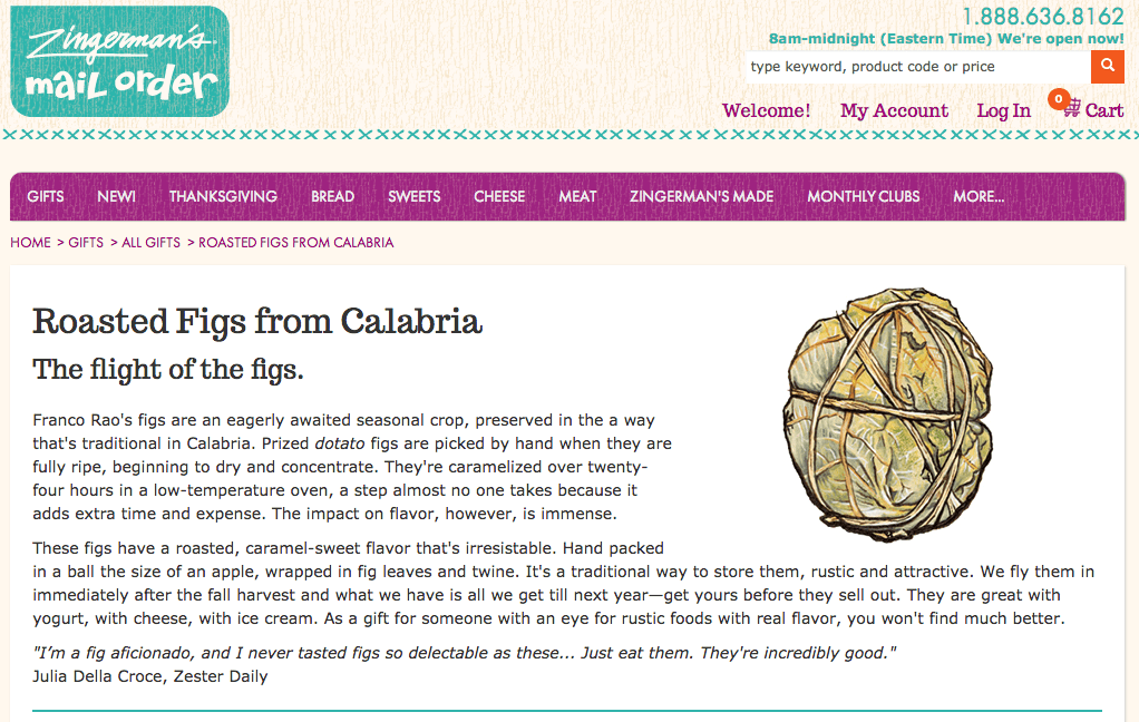 As an added bonus, more specific, descriptive product information helps your website's SEO and gives customers the information they need to make those purchases. Take a look at the example below - they explain in mouthwatering detail why their gourmet foods are the best choice.